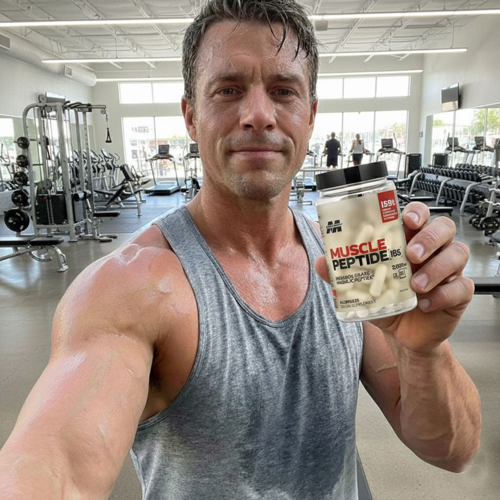 After 30, testosterone drops 1-2% yearly. Result? Muscle growth stalls, recovery drags, strength plateaus, and belly fat accumulates despite hard training. Low Testosterone kills your gains, energy, and confidence. Muscle Peptide 185 supports healthy testosterone levels so your body can finally build the lean muscle you're working for.